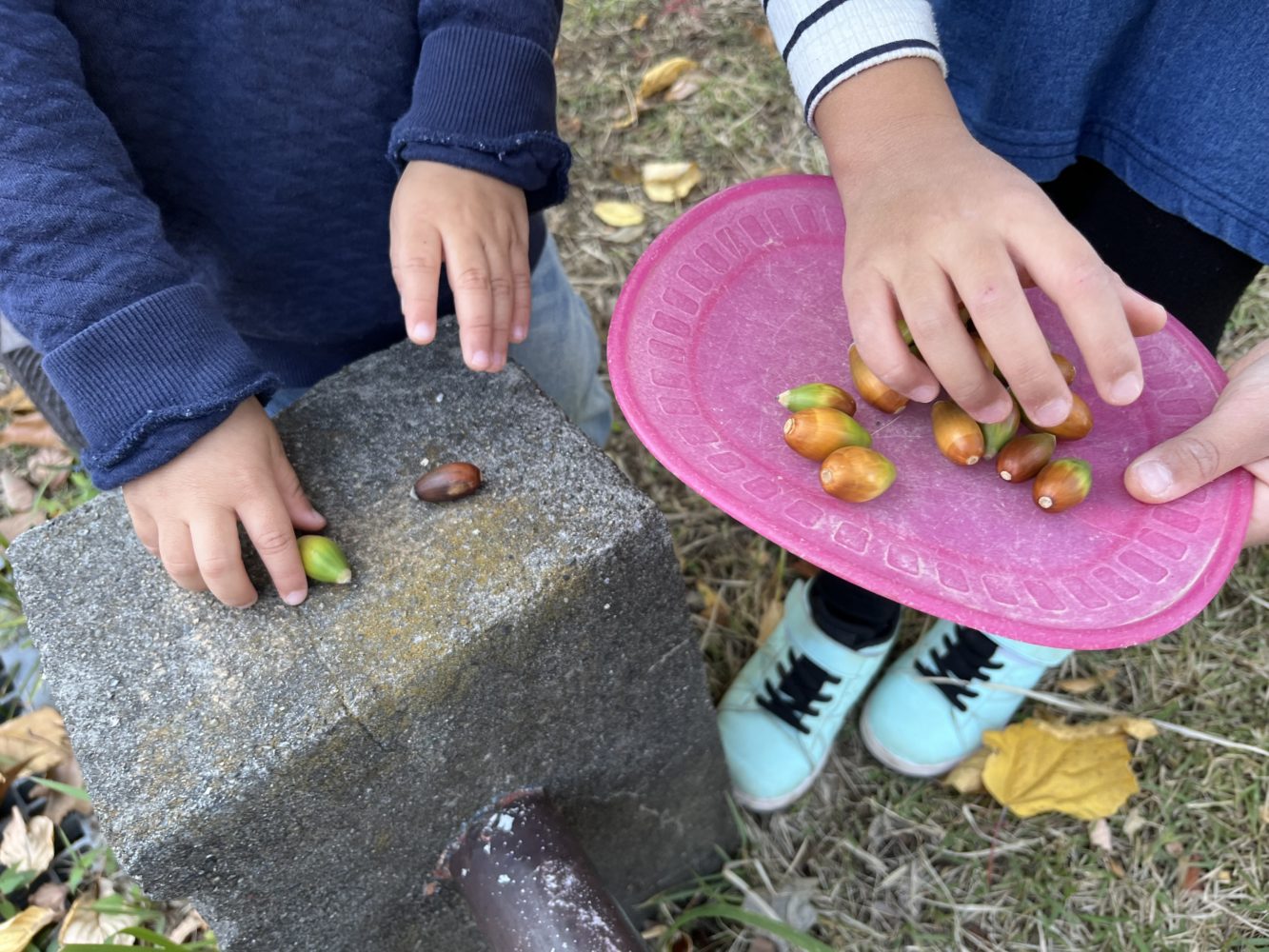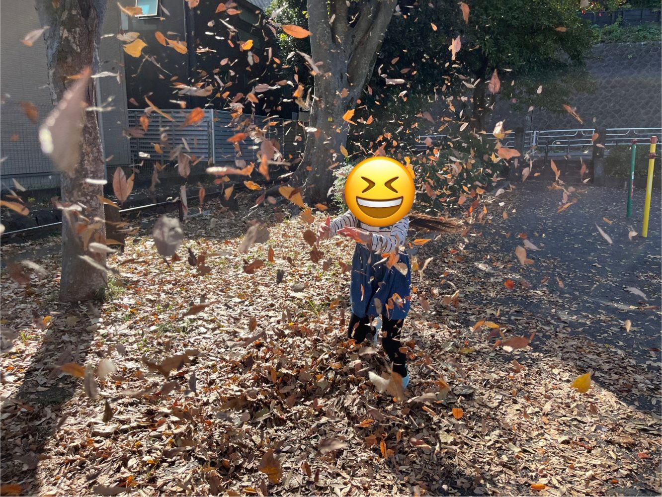 落ち葉で遊んだり