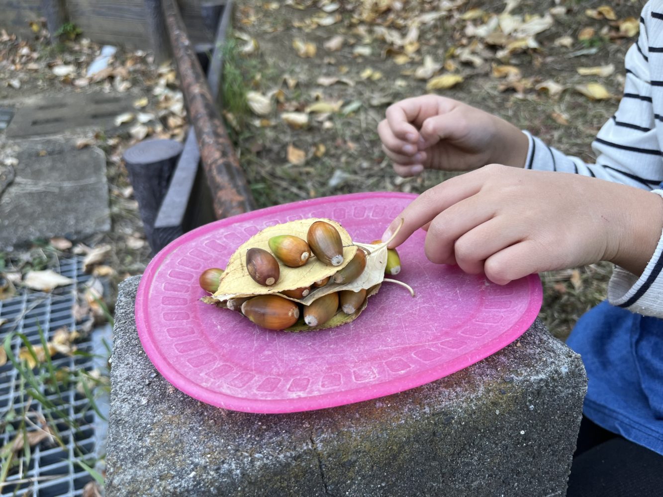 落ち葉で遊んだり