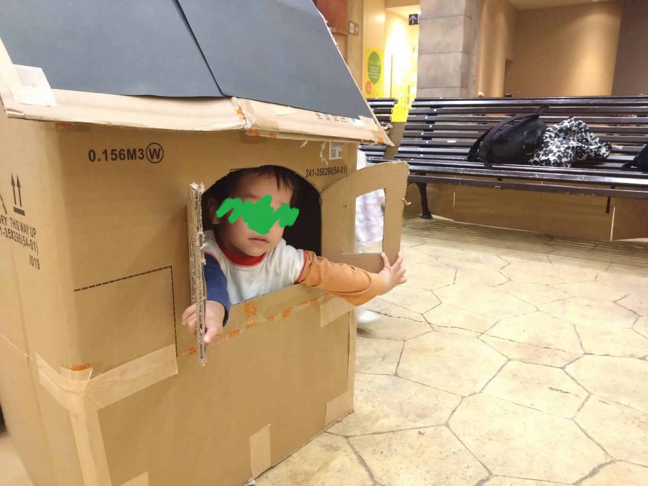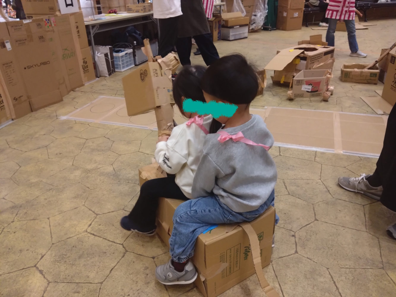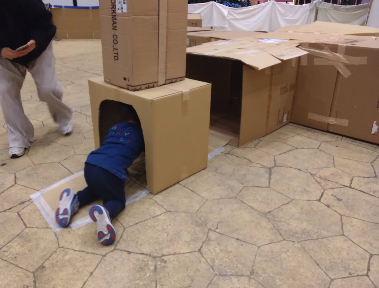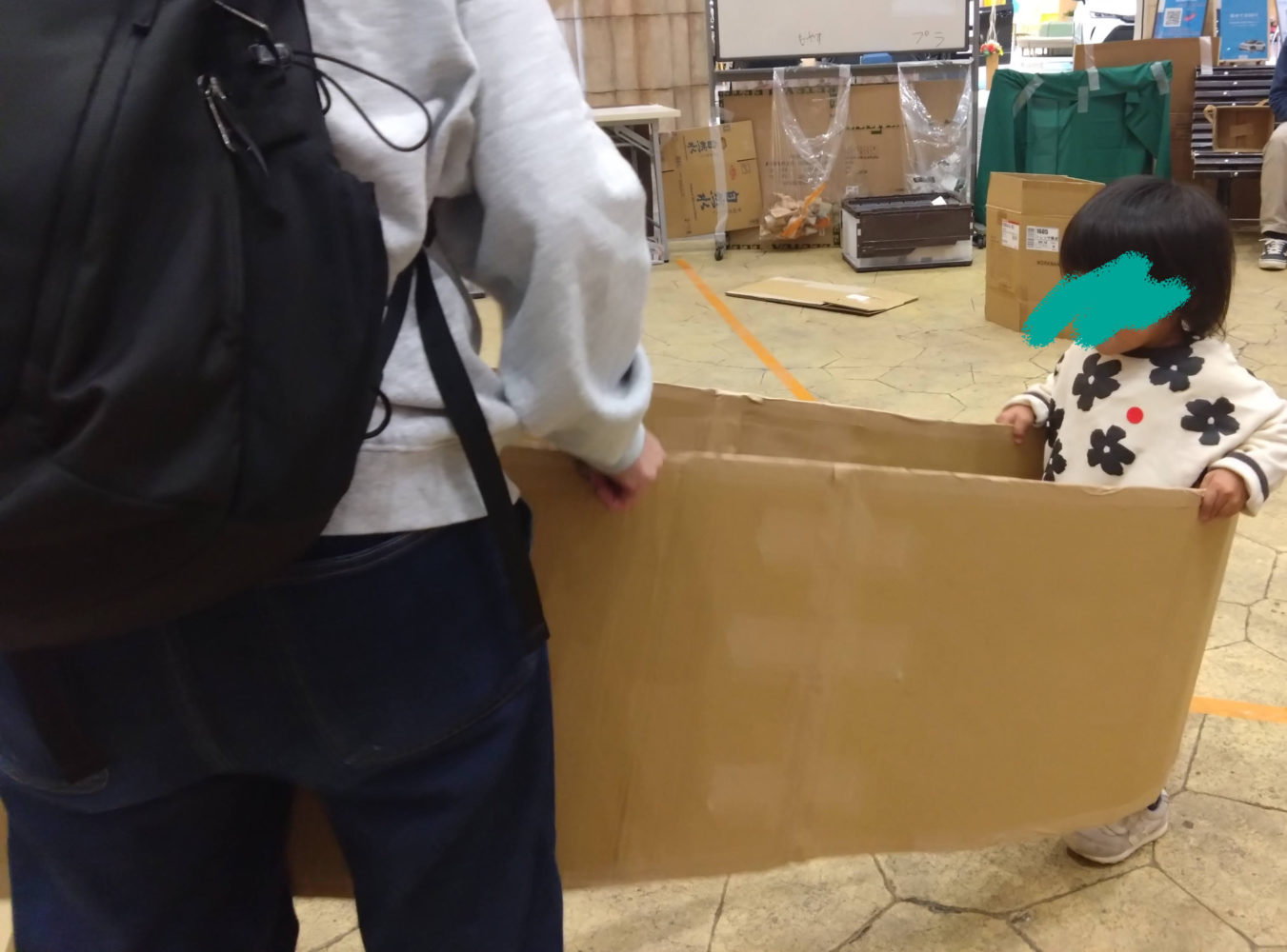 ひろーいリヨン広場(北棟2階)にダンボールがたくさん!