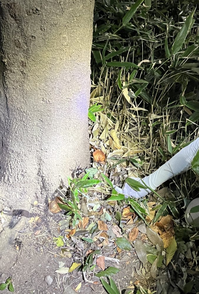 夕方に職員の方々が仕かけてくれていた”バナナトラップ”を見に行くと・・・