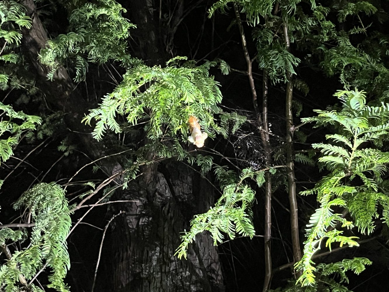 最後、テニスコートの奥の方の木でセミの羽化を見ることができました!