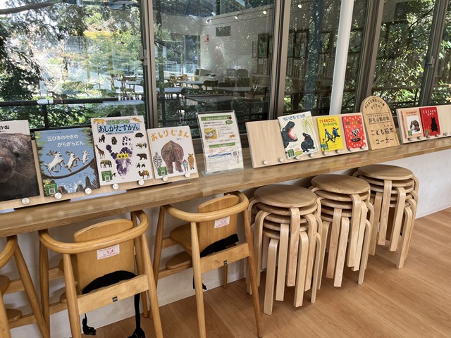 窓側には「野毛山動物園 こども絵本コーナー」があり、中央図書館の司書さんおすすめの本を読むことができます。