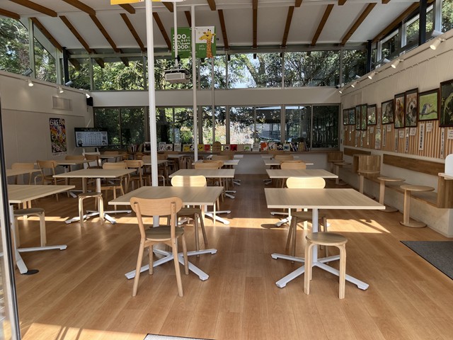 以前は屋根のみだったのがしっかり屋内になったので、天候や気温に左右されることなく快適に過ごせそうです。