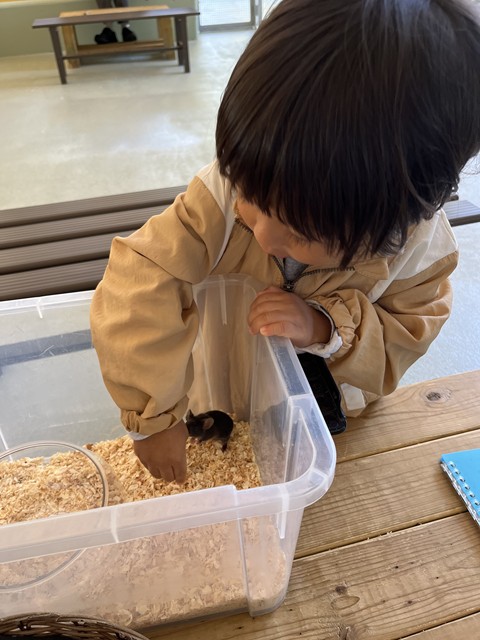 すごく動きがすばやいですが、なんとか私も息子も撫でたり、手のひらに乗せたりできました!